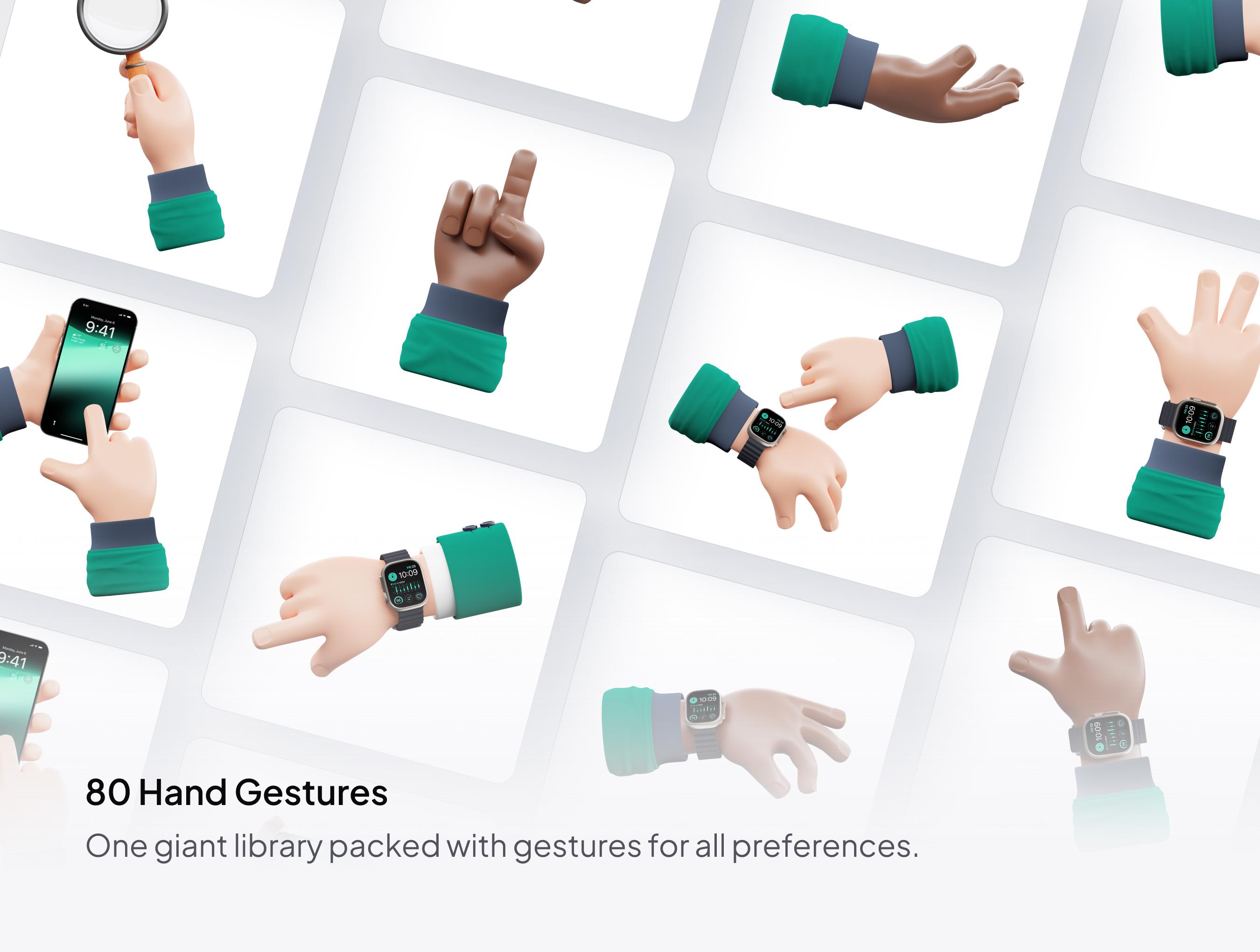 80 high-quality hand gestures.