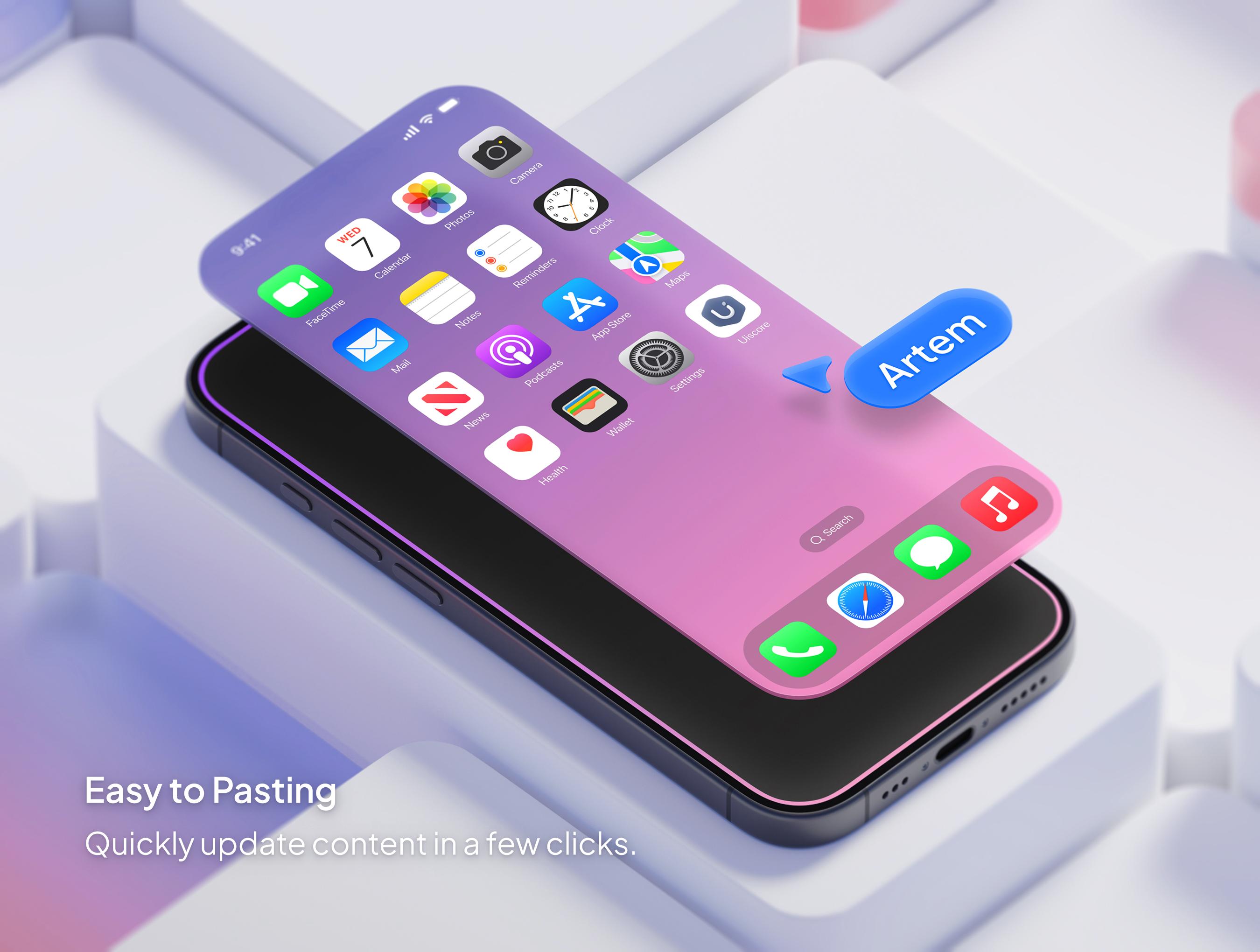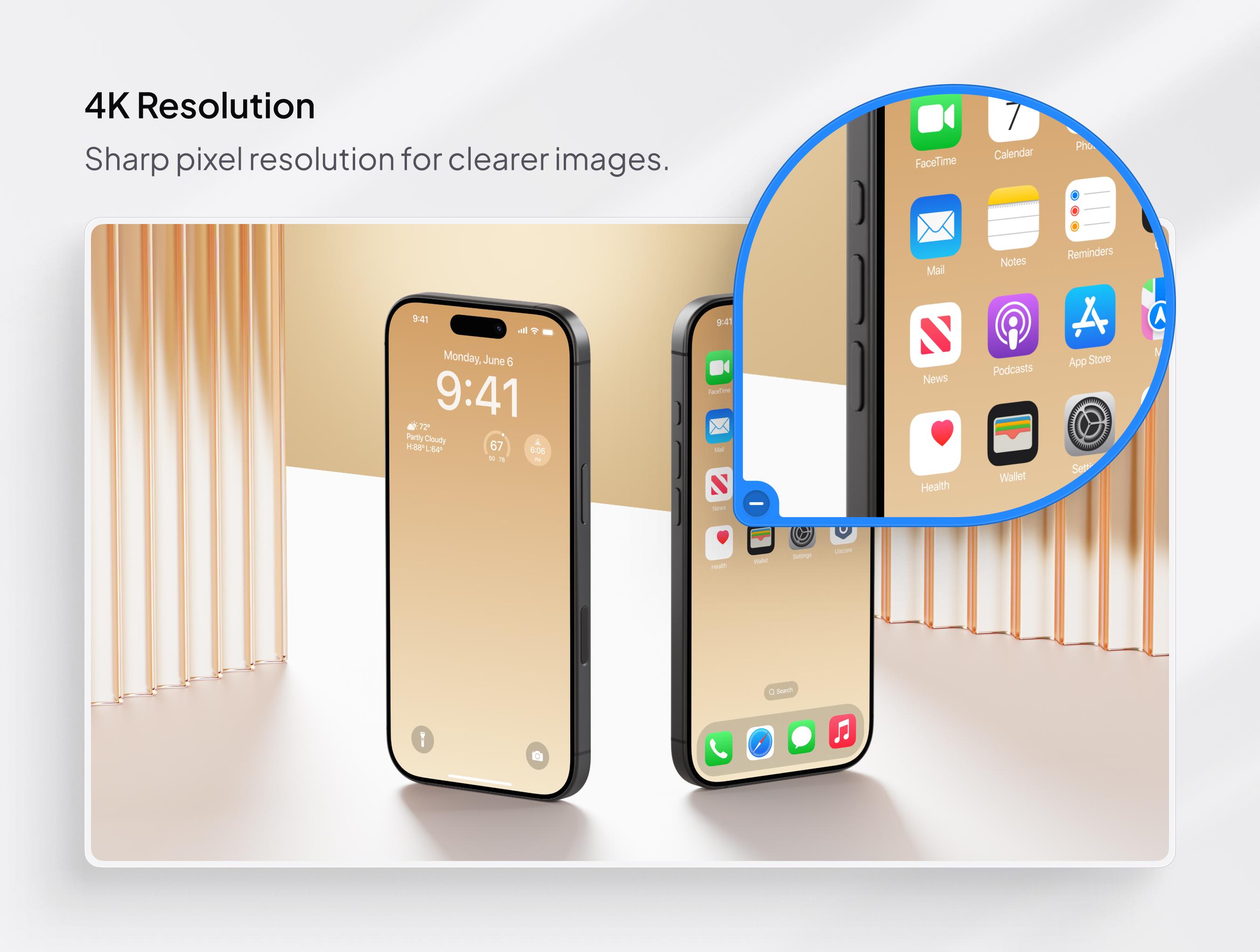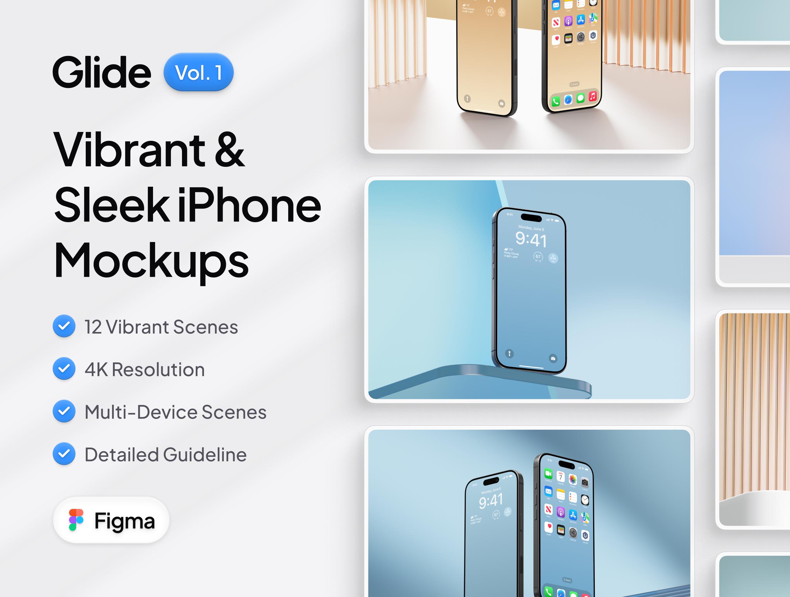 Discover a collection of 12 vibrant and minimalistic iPhone mockup scenes that elevate your presentations to a whole new level. With Glide, you can showcase the technological and sleek essence of your project or company.