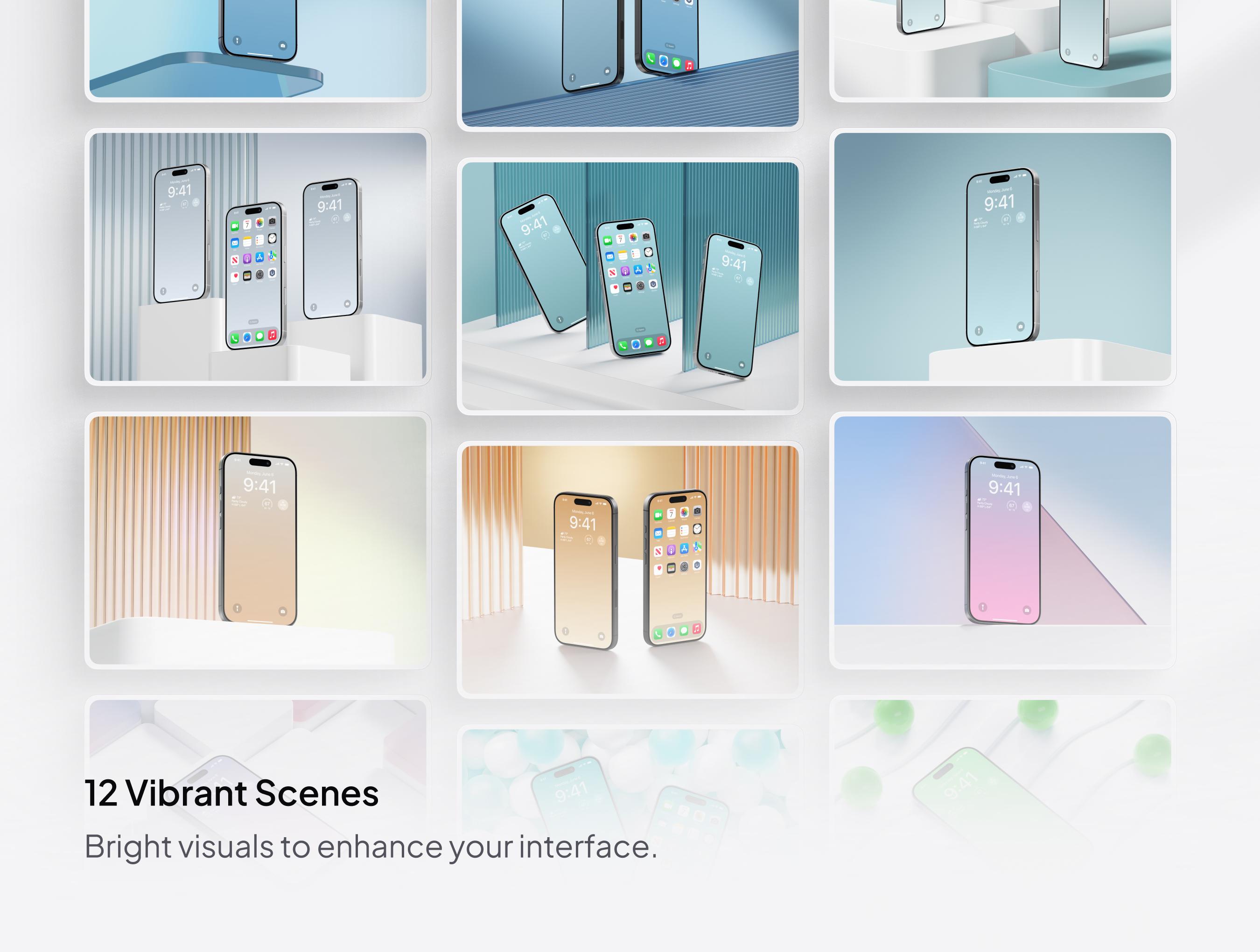 Vibrant & sleek iPhone mockups.